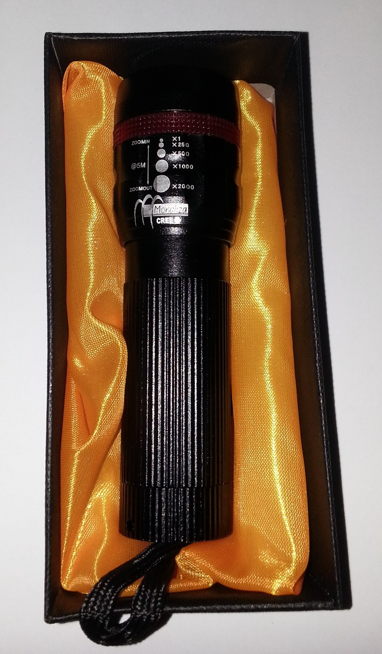 Confeccionada em alumínio com acabamento perfeito. Regulagem de foco e zoom de 1X a 2000X. Possui 3 modos de funcionamento.